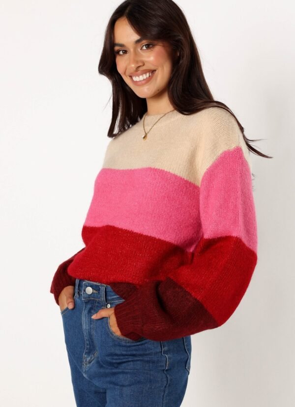 Crewneck Multi Stripe Knit Sweater - Berry