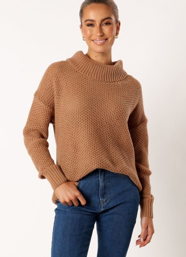 Turtleneck Knit Sweater - Beige