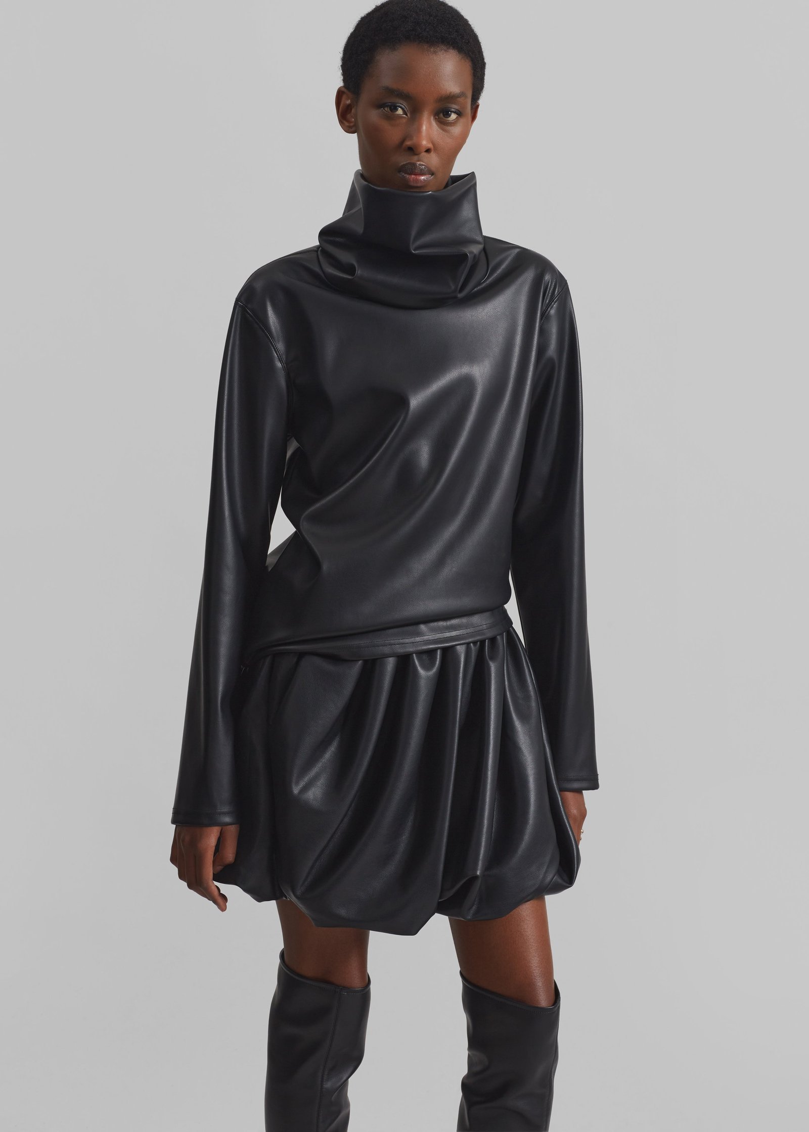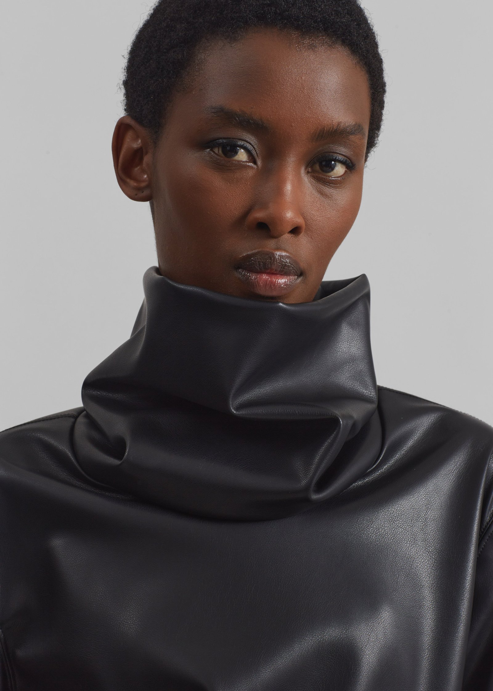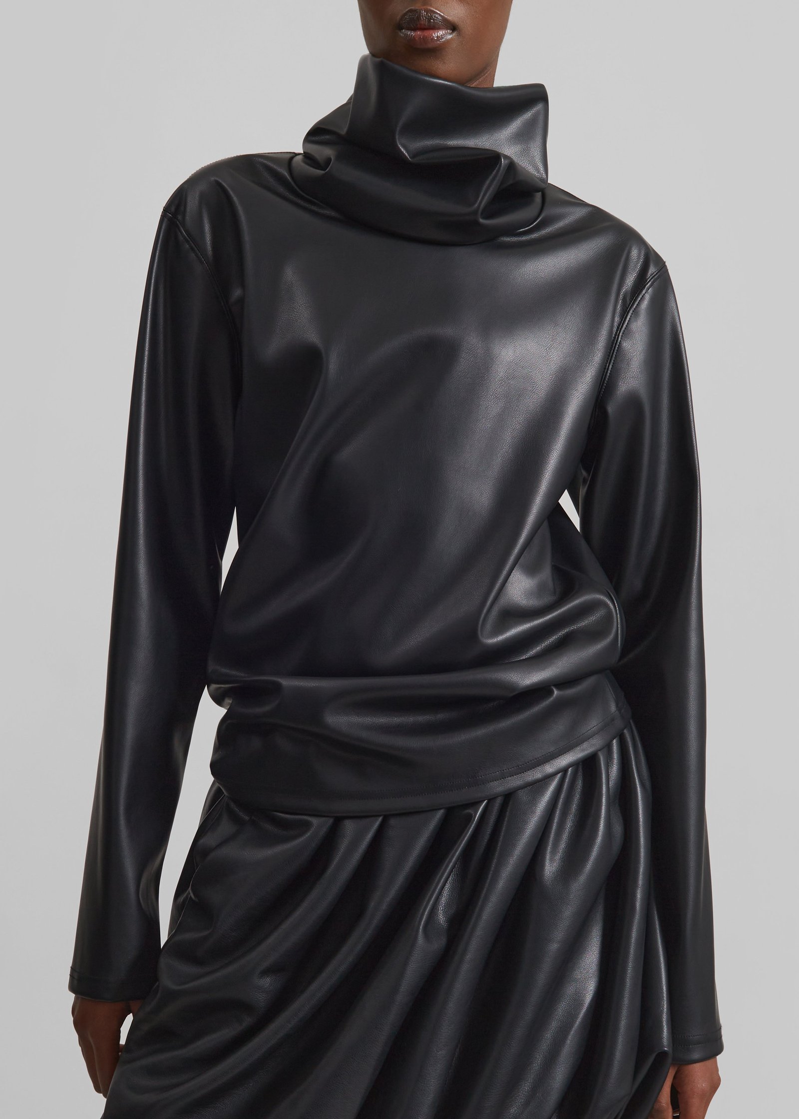 Mock Neck Faux Leather Top – Black