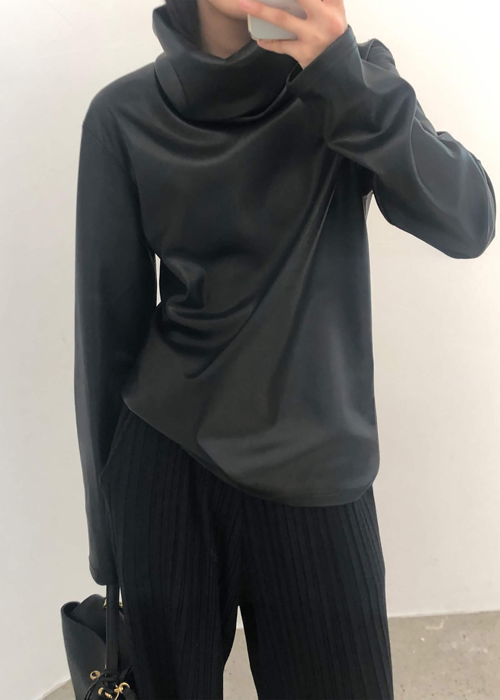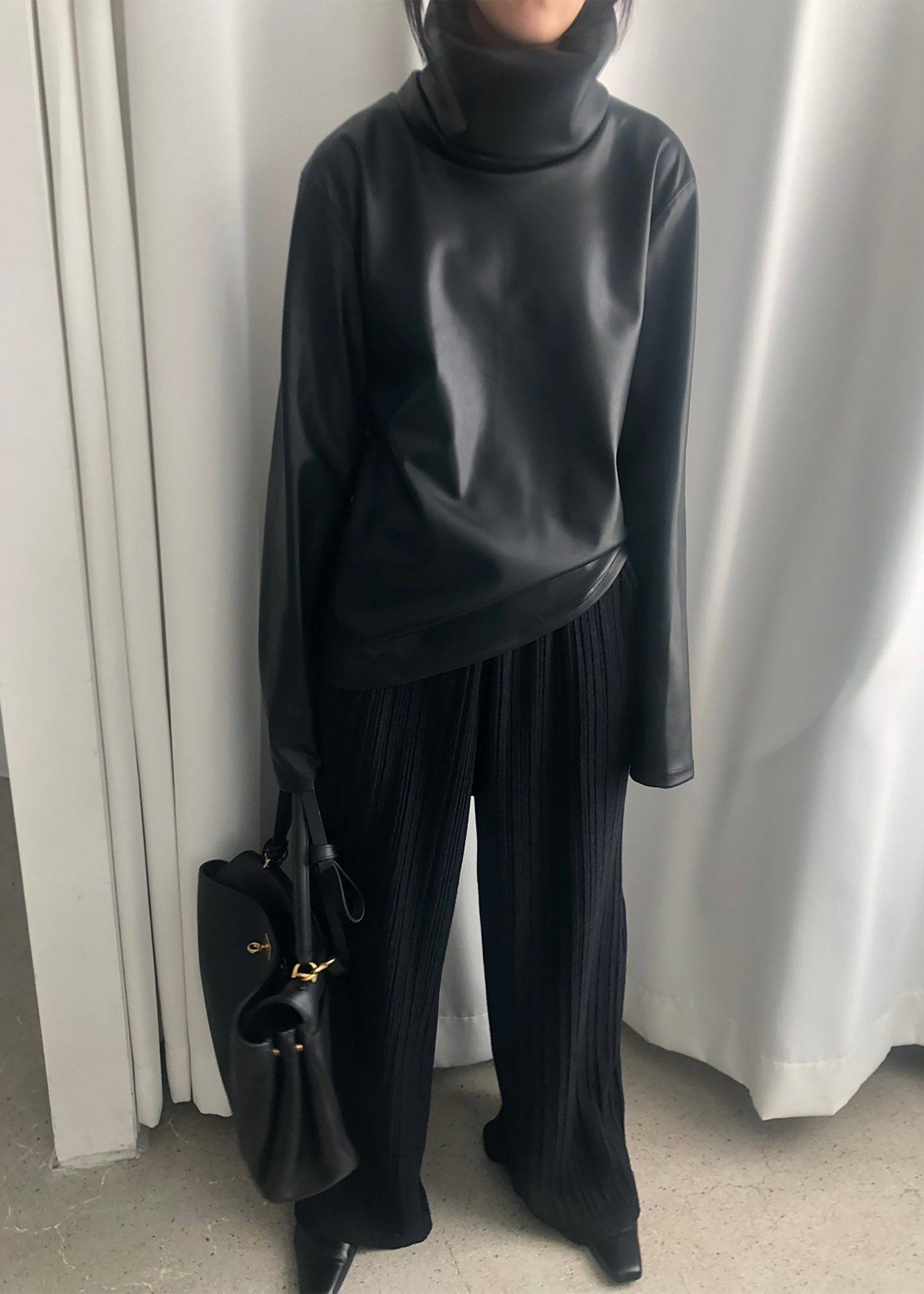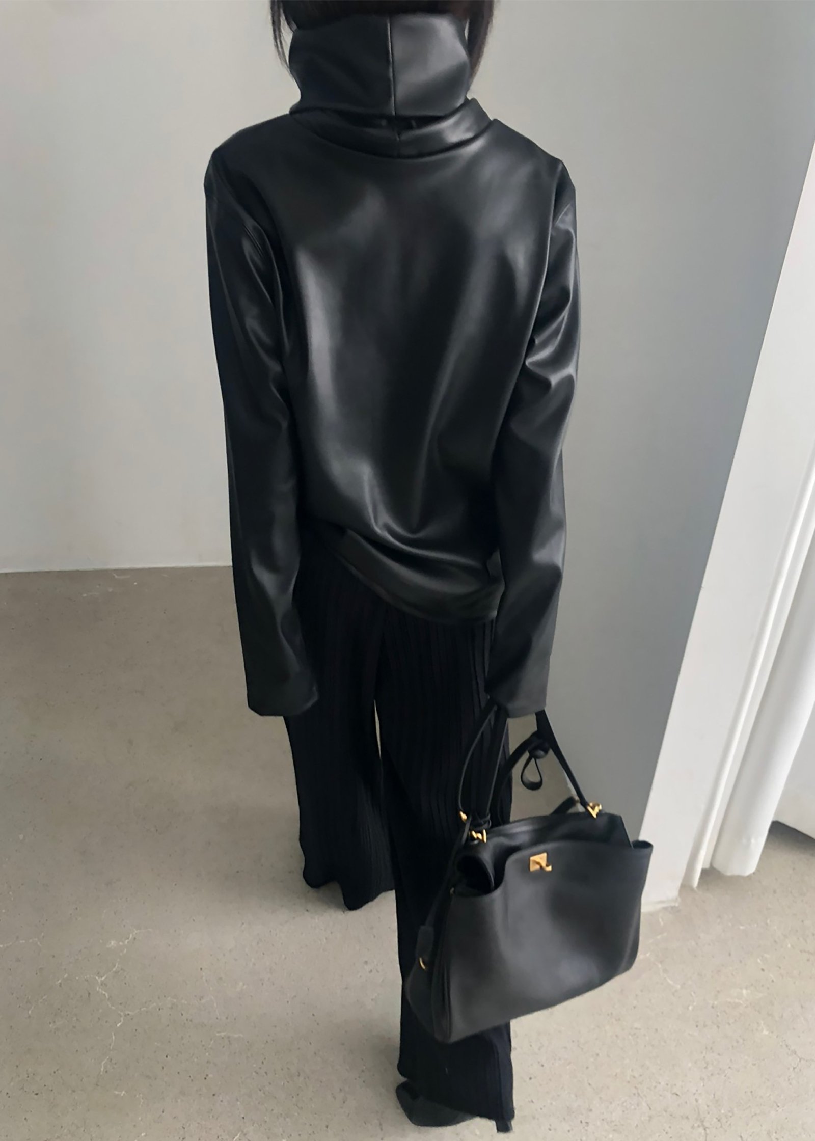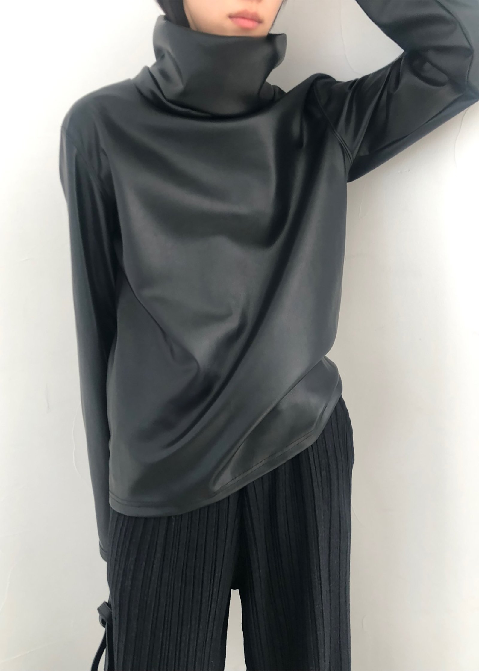 Be the first to review “Mock Neck Faux Leather Top – Black”