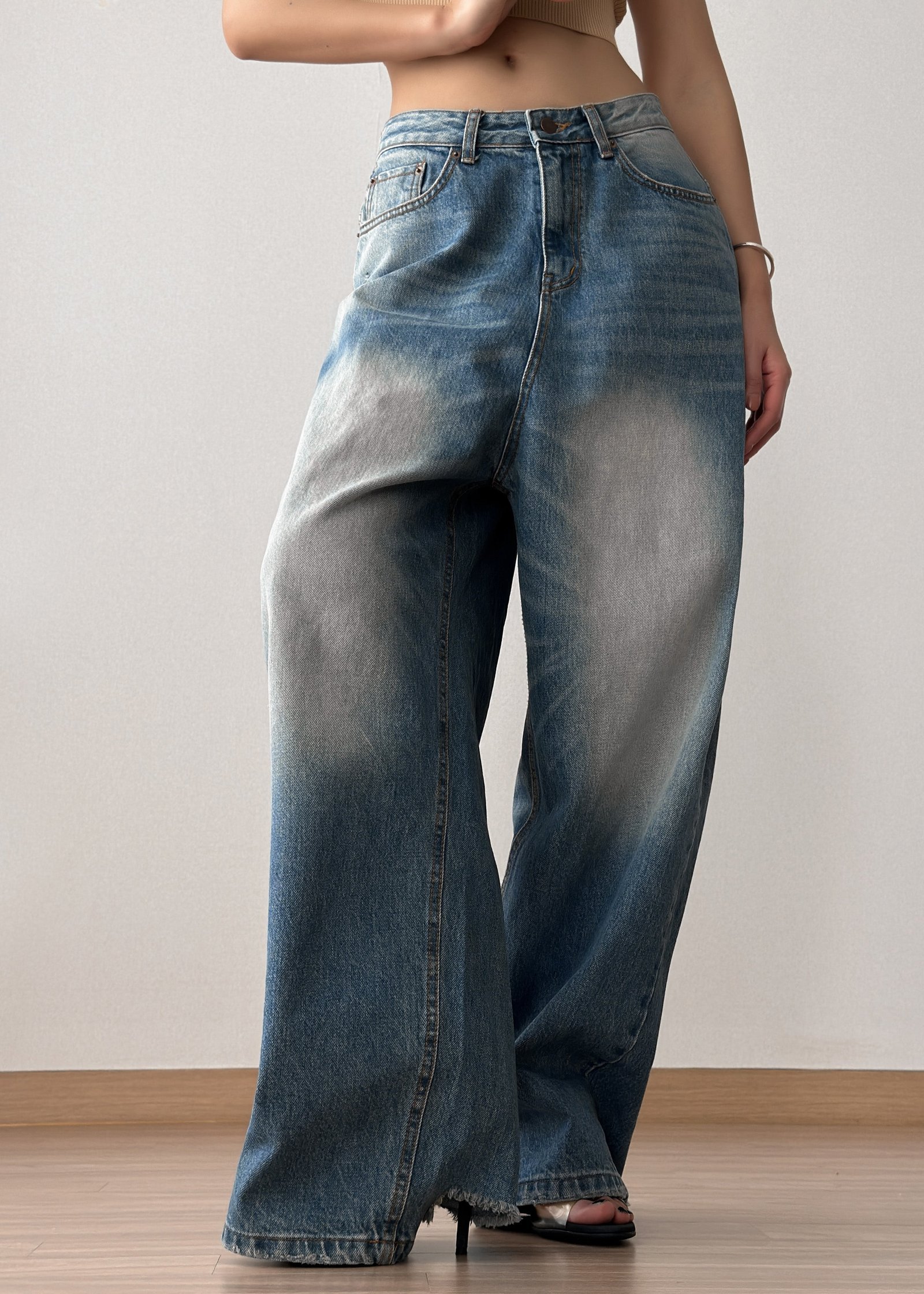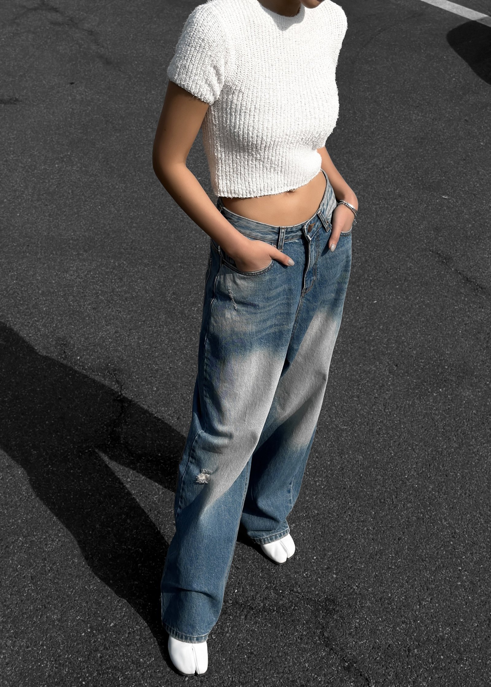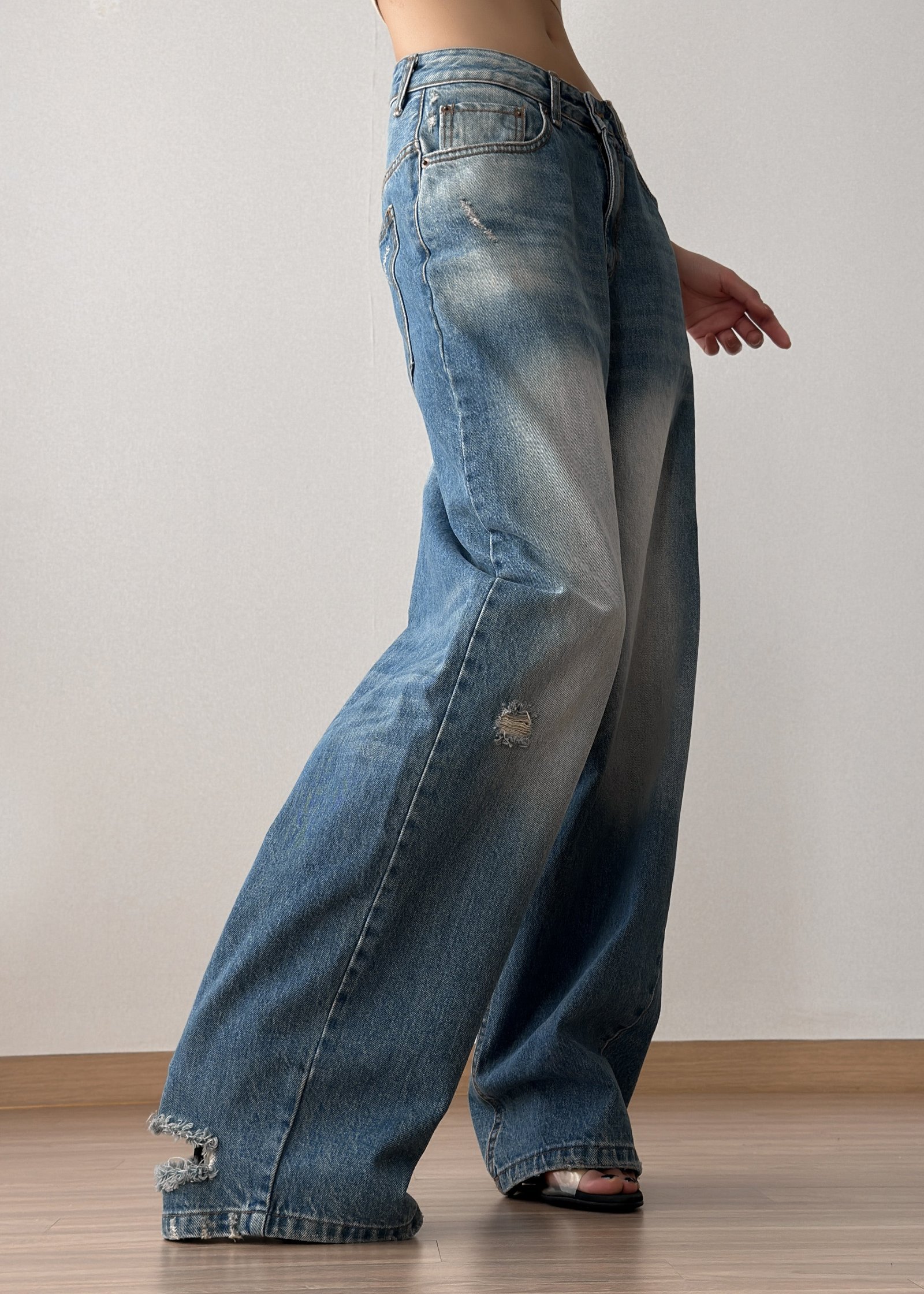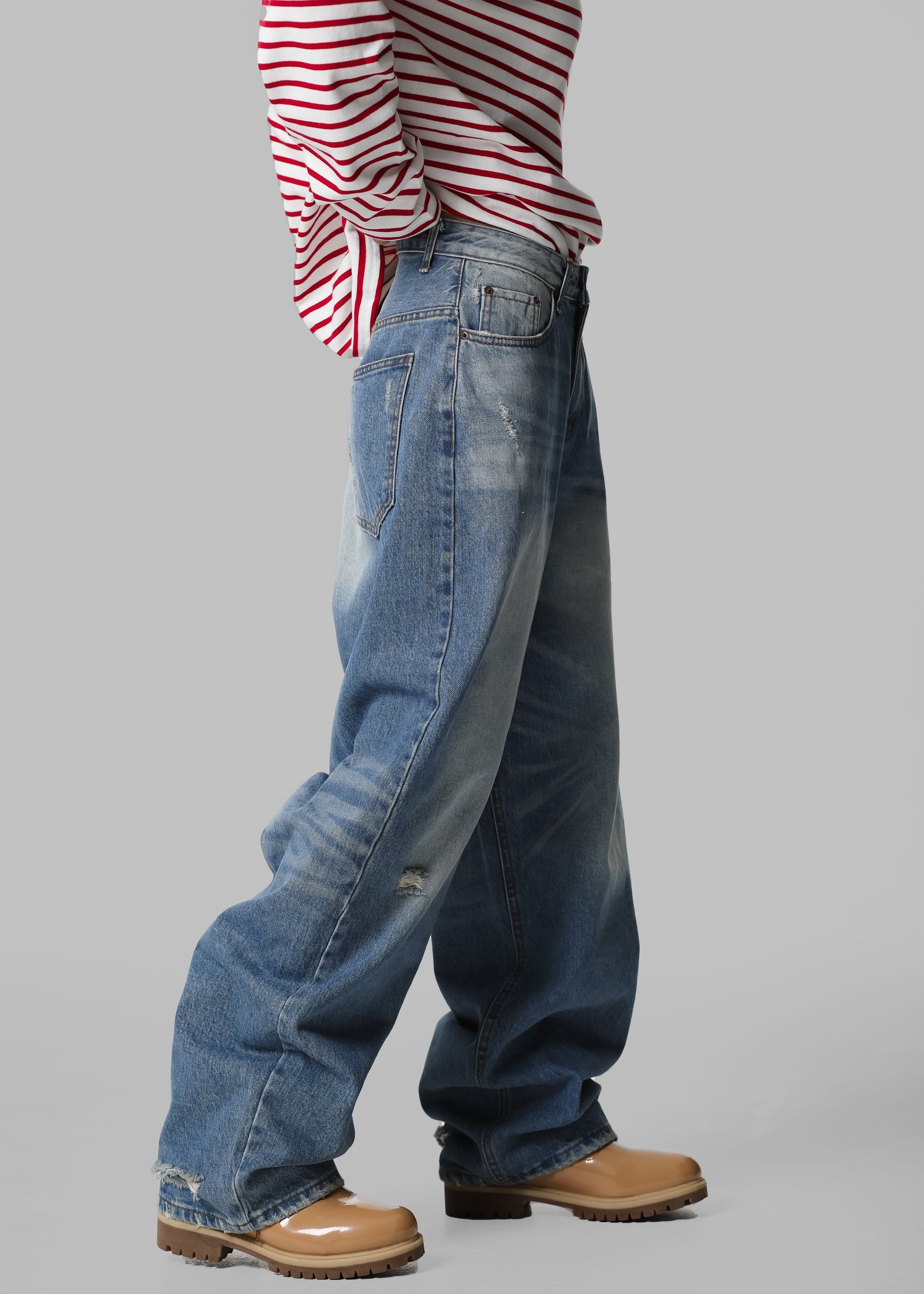 Midweight bleached ripped denim
